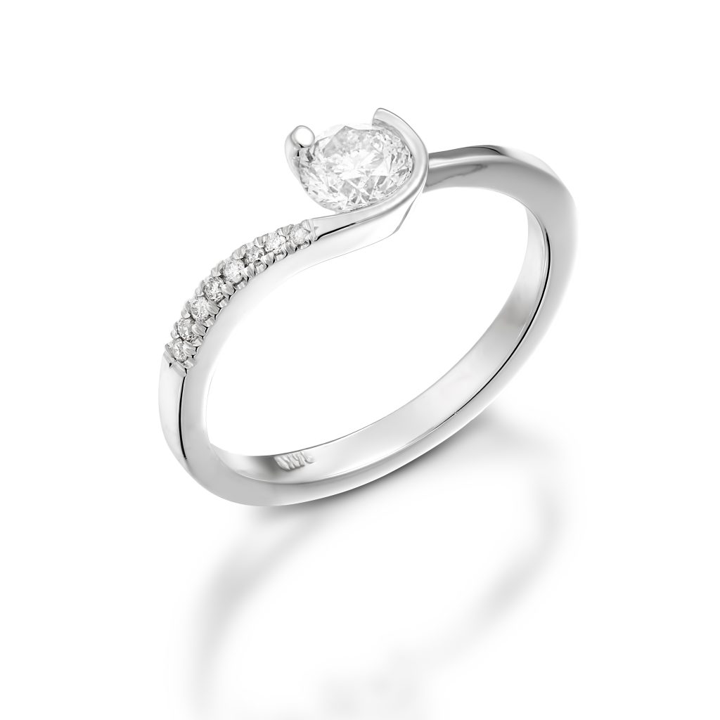 טבעת אירוסין קלאסית בקו עדין המדגיש את היהלום המרכזי