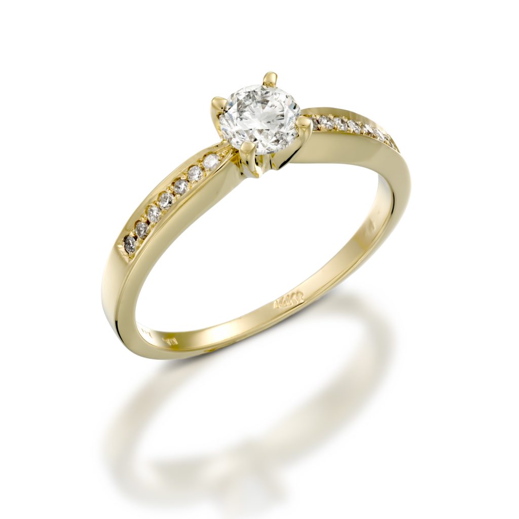טבעת אירוסין בעיצוב אלגנטי עם שורת יהלומים בצדדים