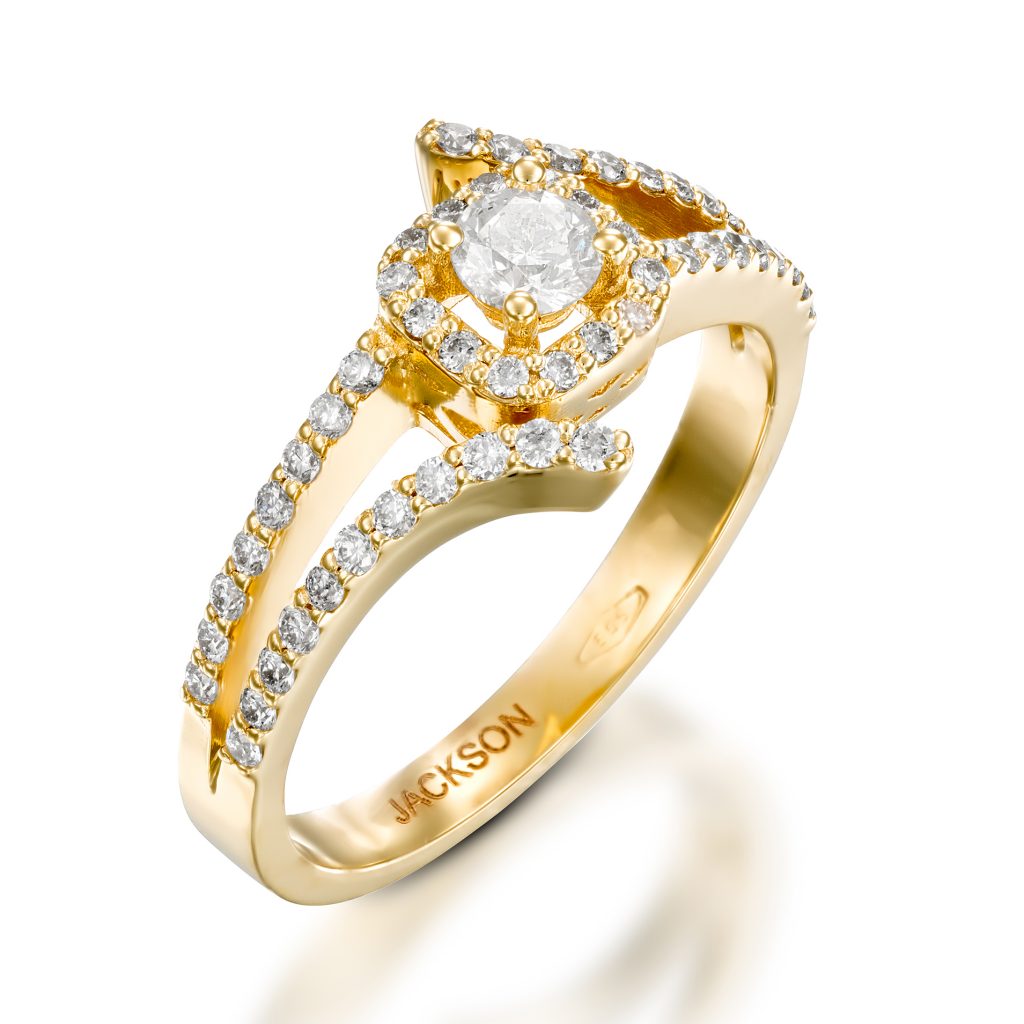 טבעת אירוסין יוקרתית בעיצוב ייחודי, עשירה ביהלומים