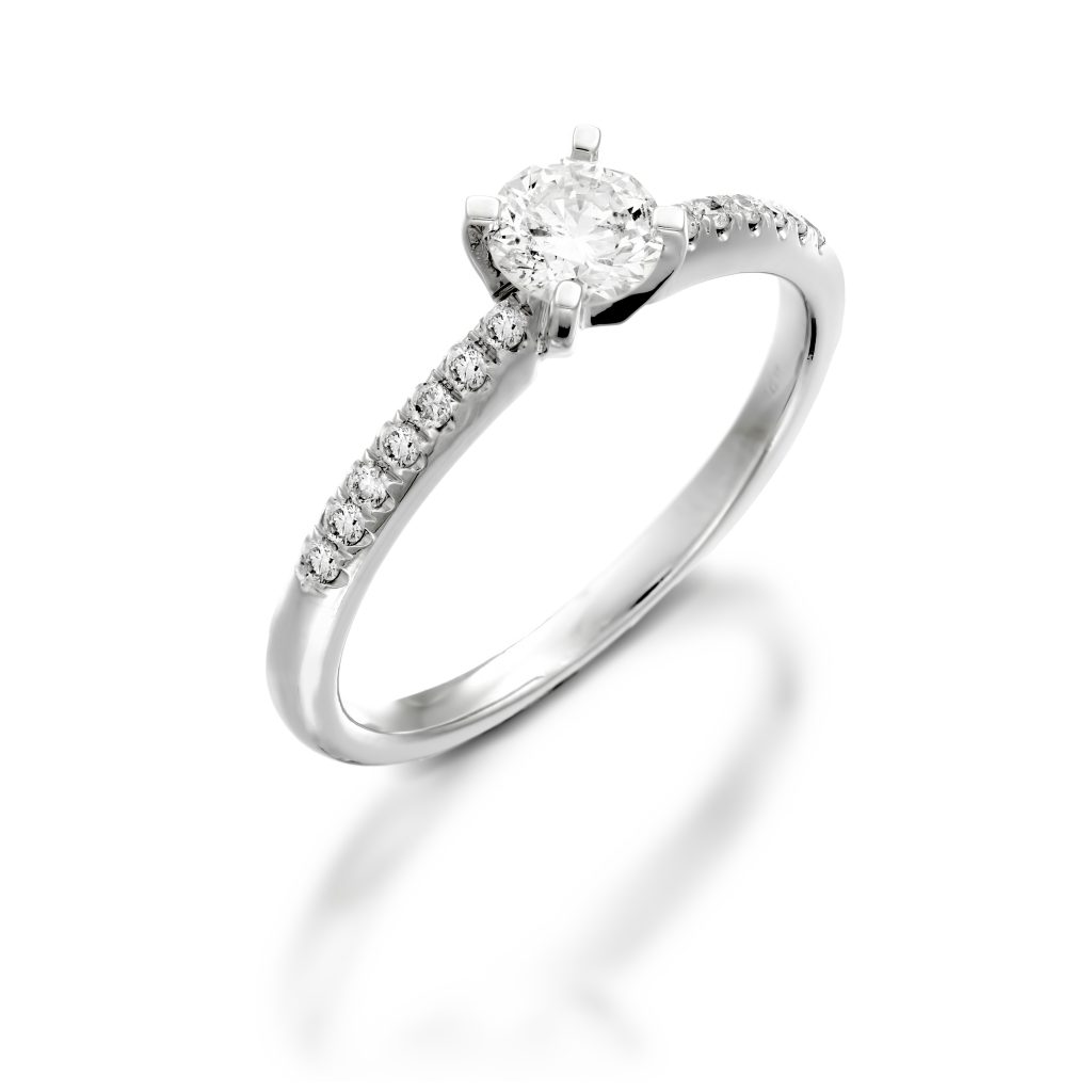 טבעת אירוסין קלאסית בעיצוב עדין עם שורת יהלומים