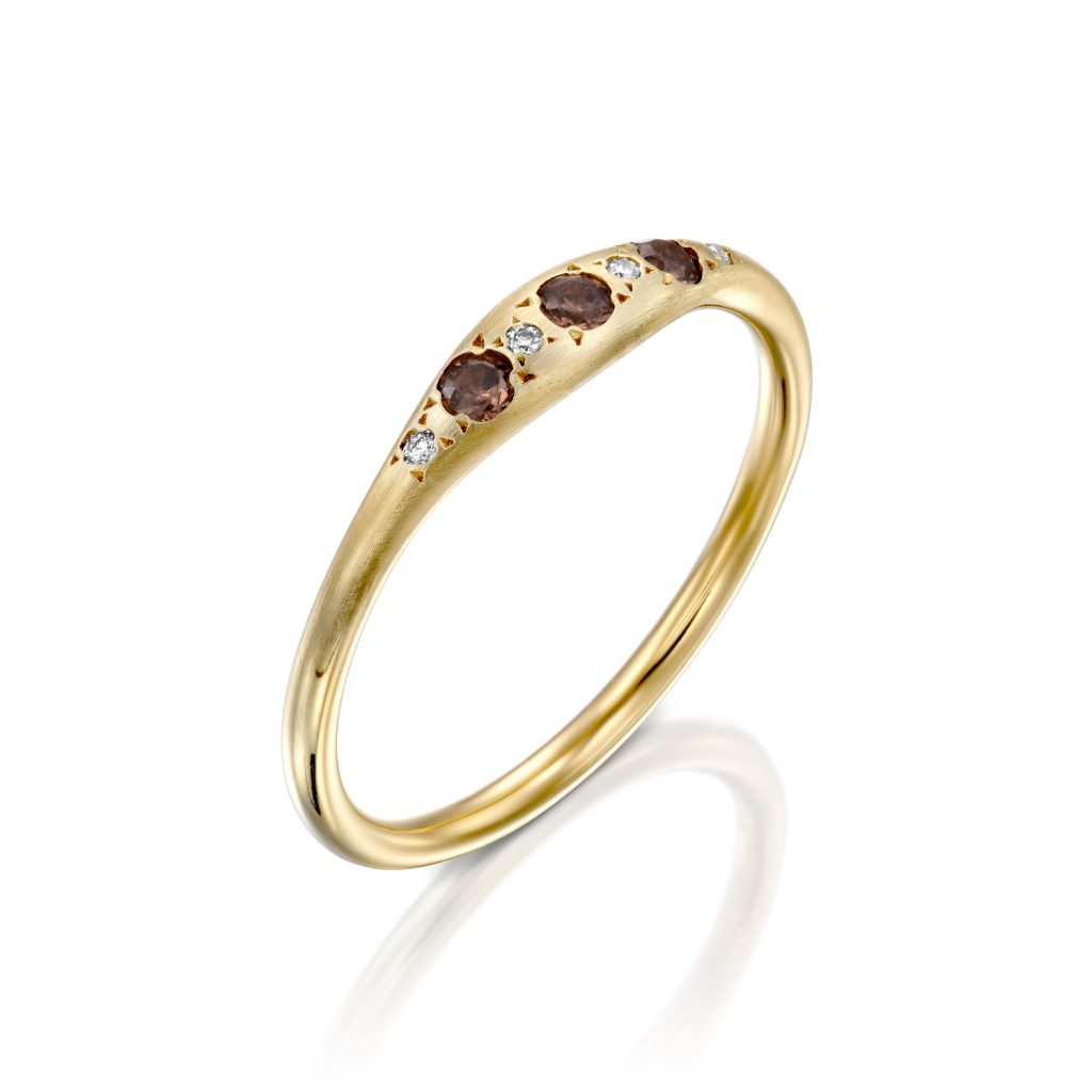 טבעת יהלומים וינטג׳ מזהב 14k, משובצת ביהלומים עם אבני חן חומות.