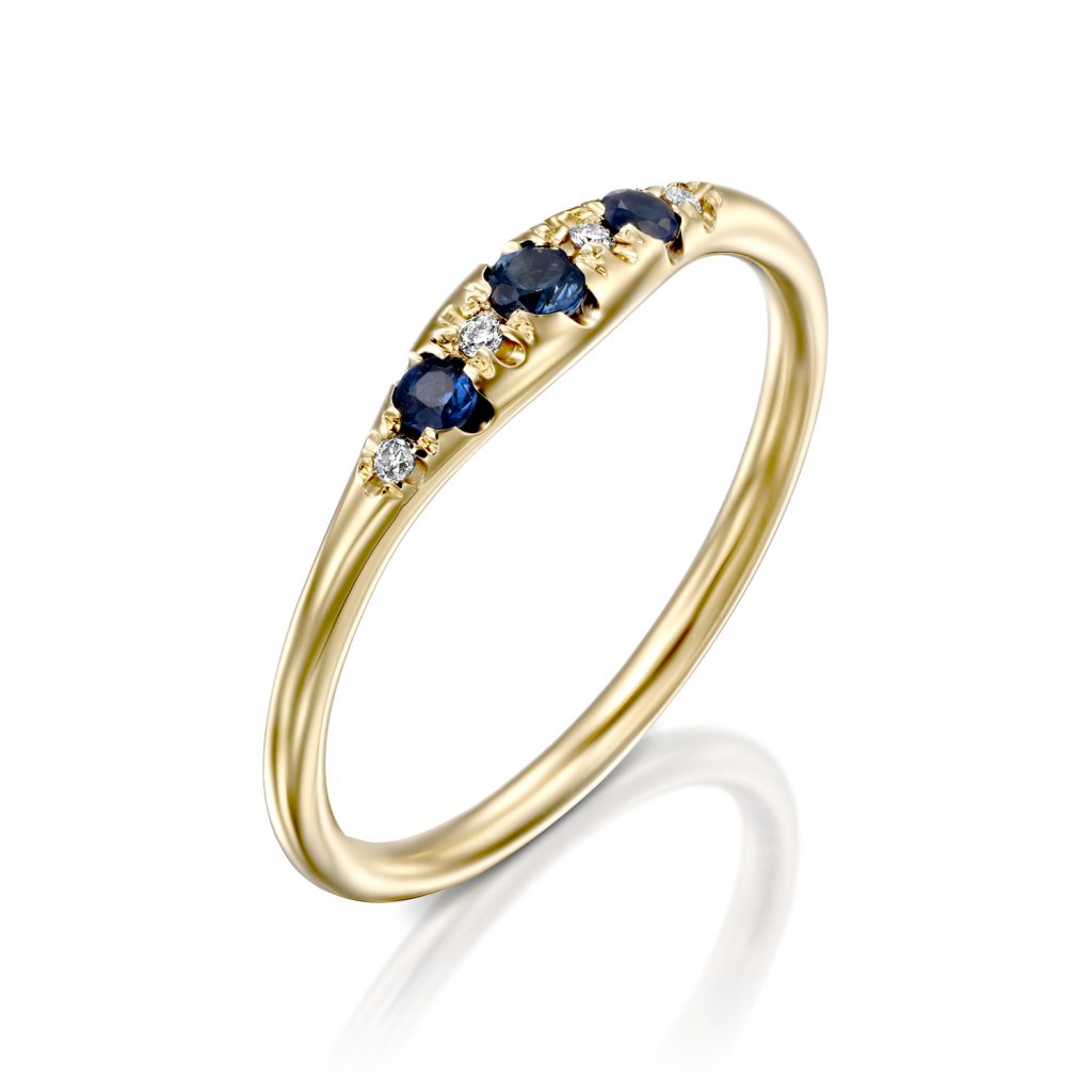 טבעת יהלומים וינטג׳ מזהב 14k, משובצת ביהלומים ובאבני חן כחולות.