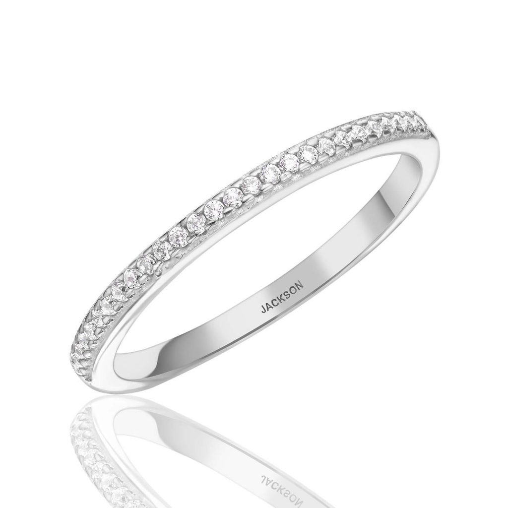 טבעת זהב 14k עגולה, משובצת חצי זרקונים