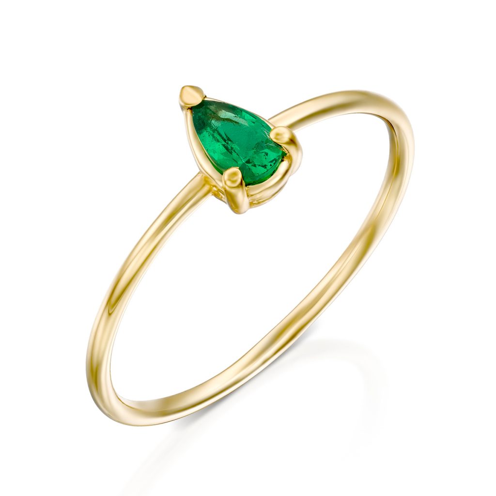 טבעת זהב 14K עם שיבוץ אבן חן ירוקה – אמרלד קורונדום