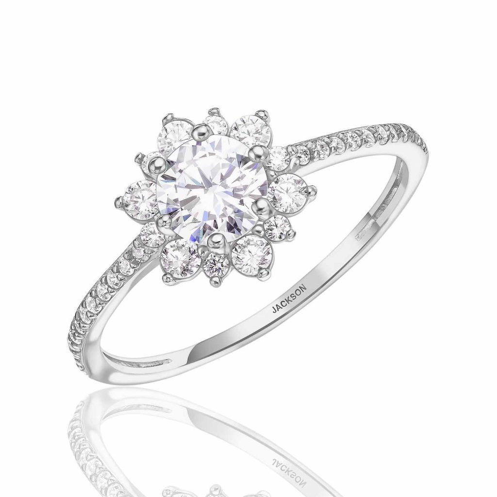 טבעת זהב 14k מרשימה במיוחד, משובצת זרקונים בצורת פרח.