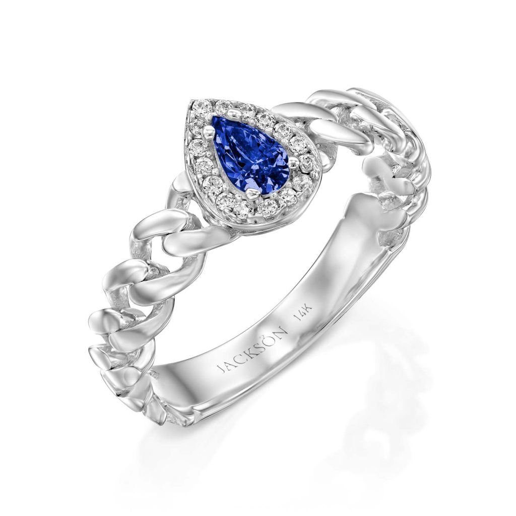 משובצת טיפה כחולה במרכז וזרקונים קטנים סביב