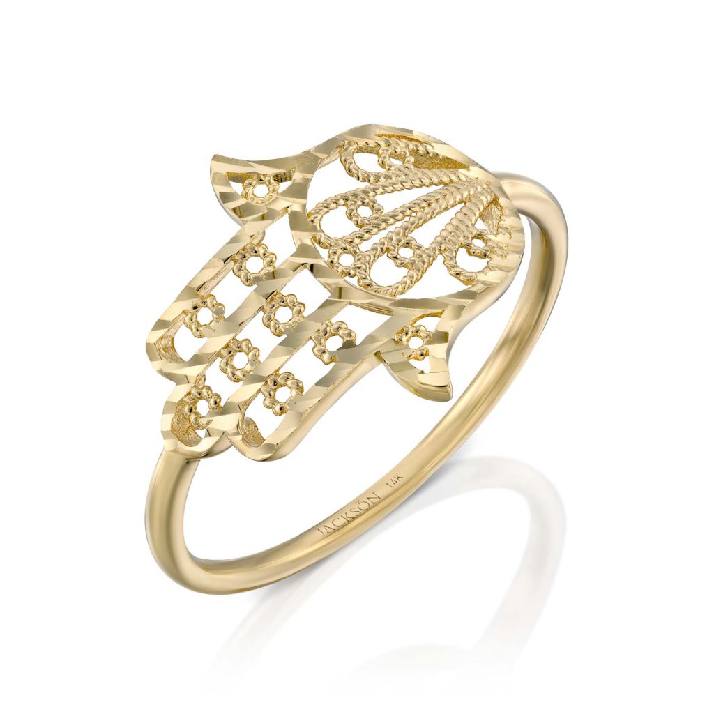 טבעת זהב 14k מהממת בעיצוב חמסה