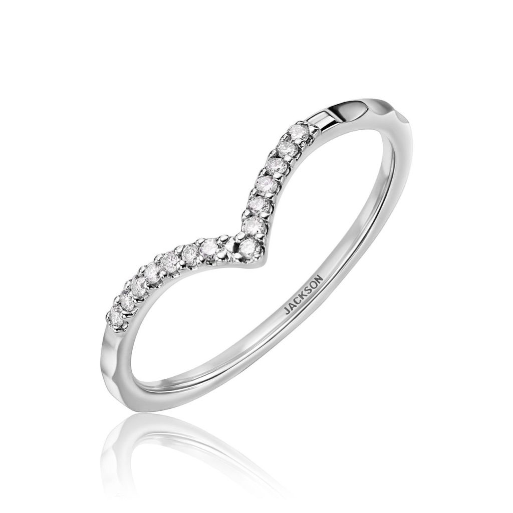 טבעת יהלומים זהב 14K בצורת וי עם ריקועים בצדדים