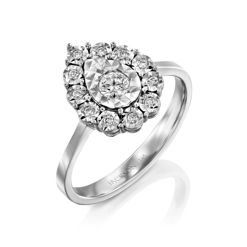 טבעת זהב 14K בעיצוב טיפה משובצת יהלומים