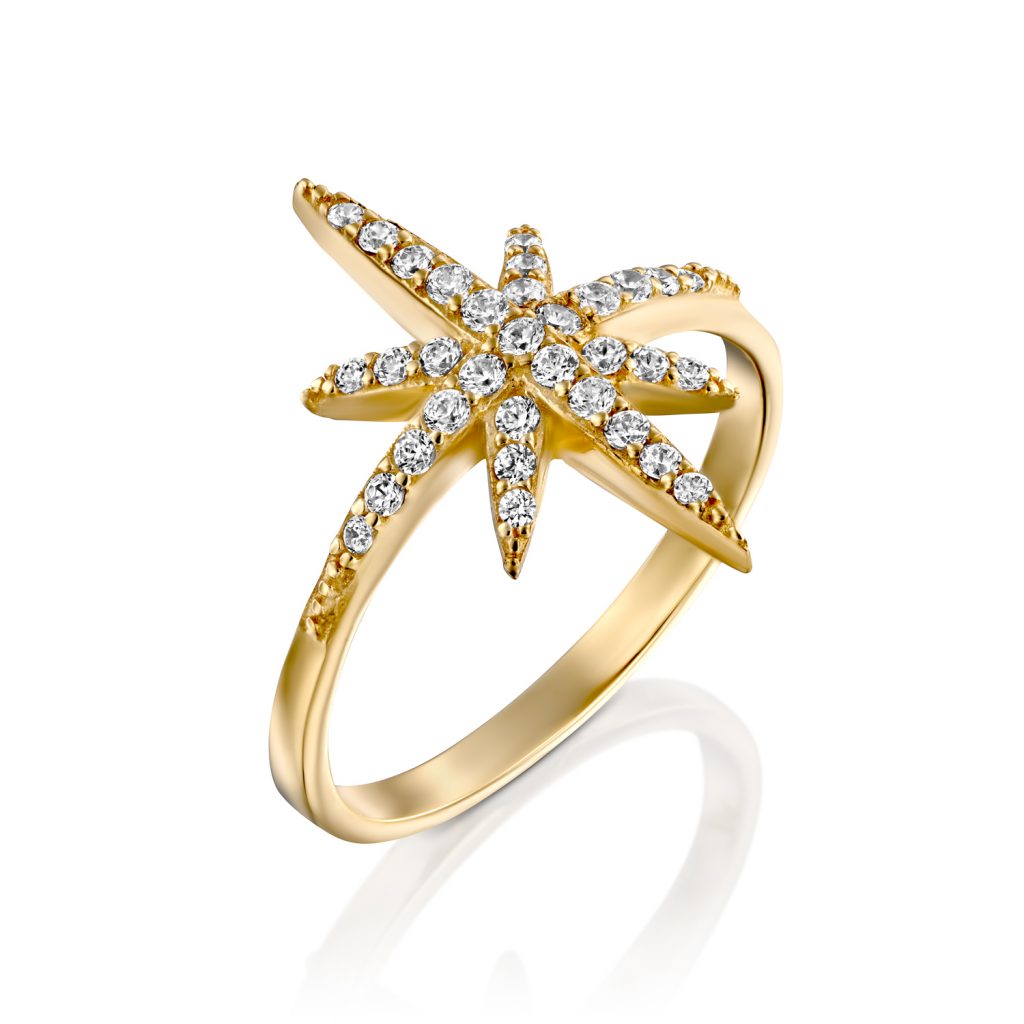 טבעת אפנתית מזהב 14K בדוגמת ניצוץ משובצת יהלומים.