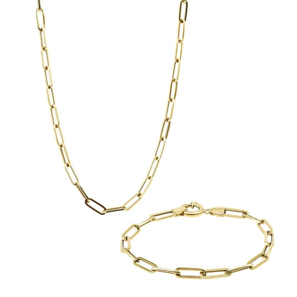סט מהמם של שרשרת חוליות זהב 14K + צמיד זהב 14K תואם.