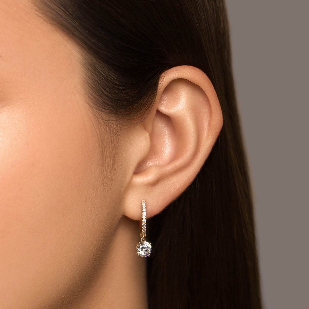 עגילי זהב 14k צורת פרסה תלויים משובצים זרקונים באיכות גבוהה
