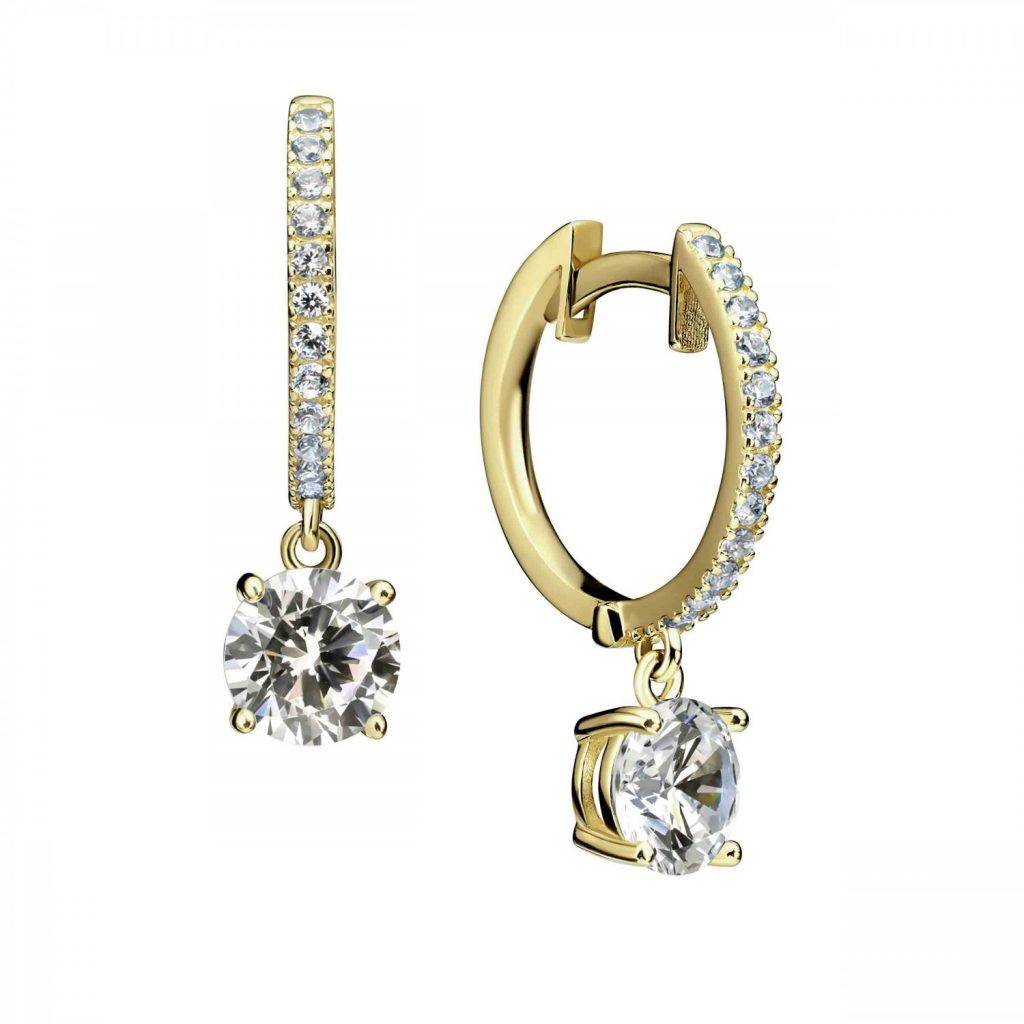 עגילי זהב 14k צורה עגולה תלויים משובצים זרקונים באיכות גבוהה