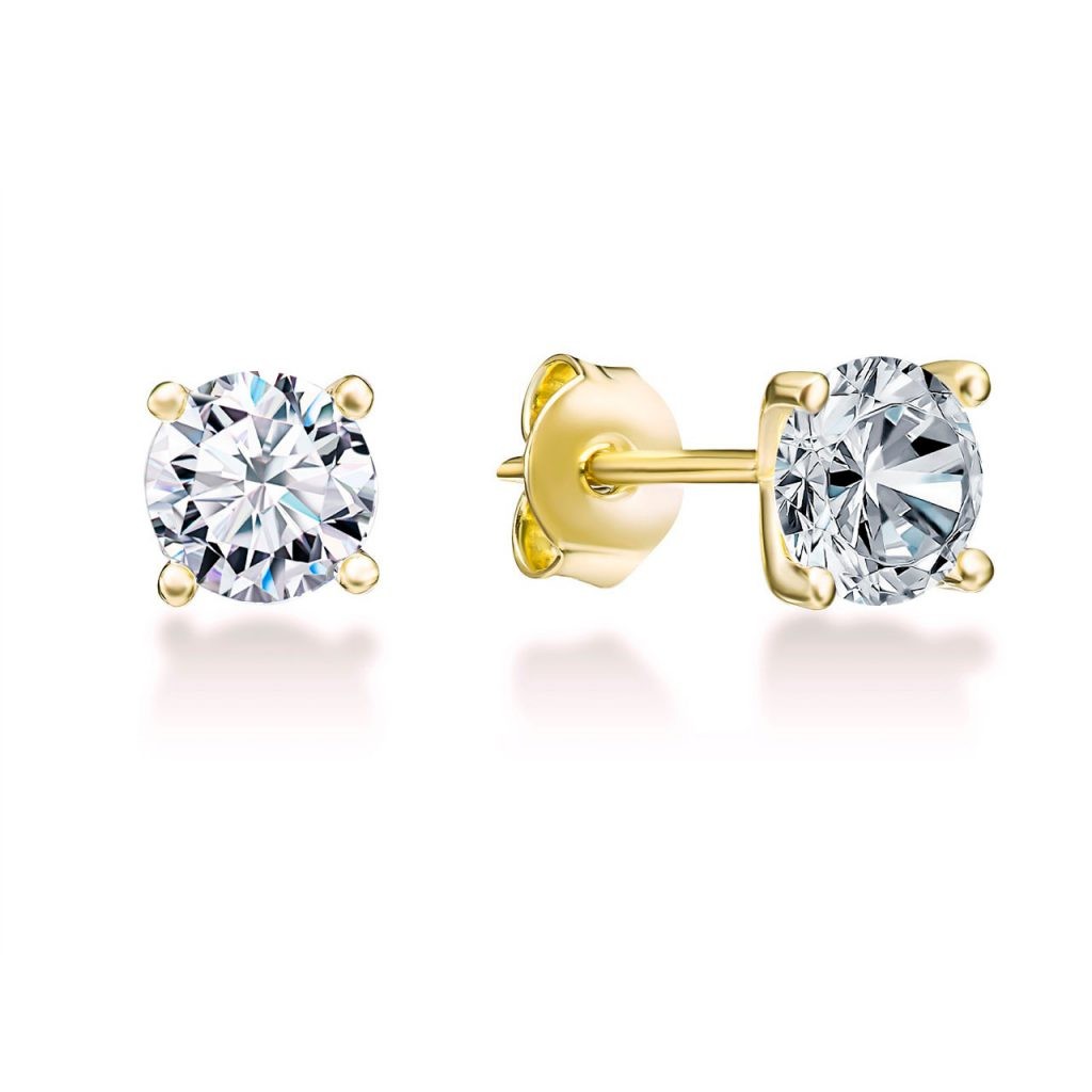 עגילי זהב 14k צמודים משובצים זרקון באיכות גבוהה