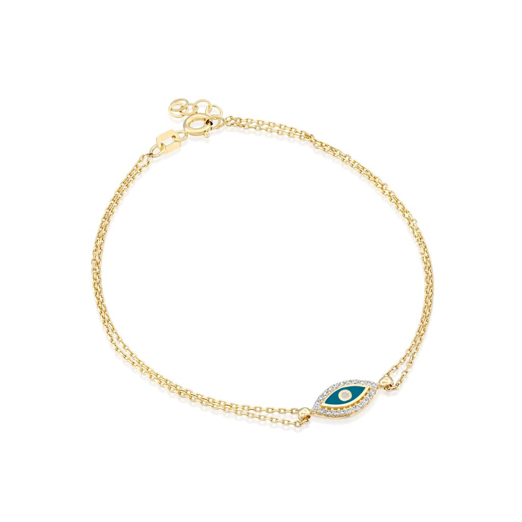 צמיד זהב 14K עין משובצת עם שרשרת כפולה