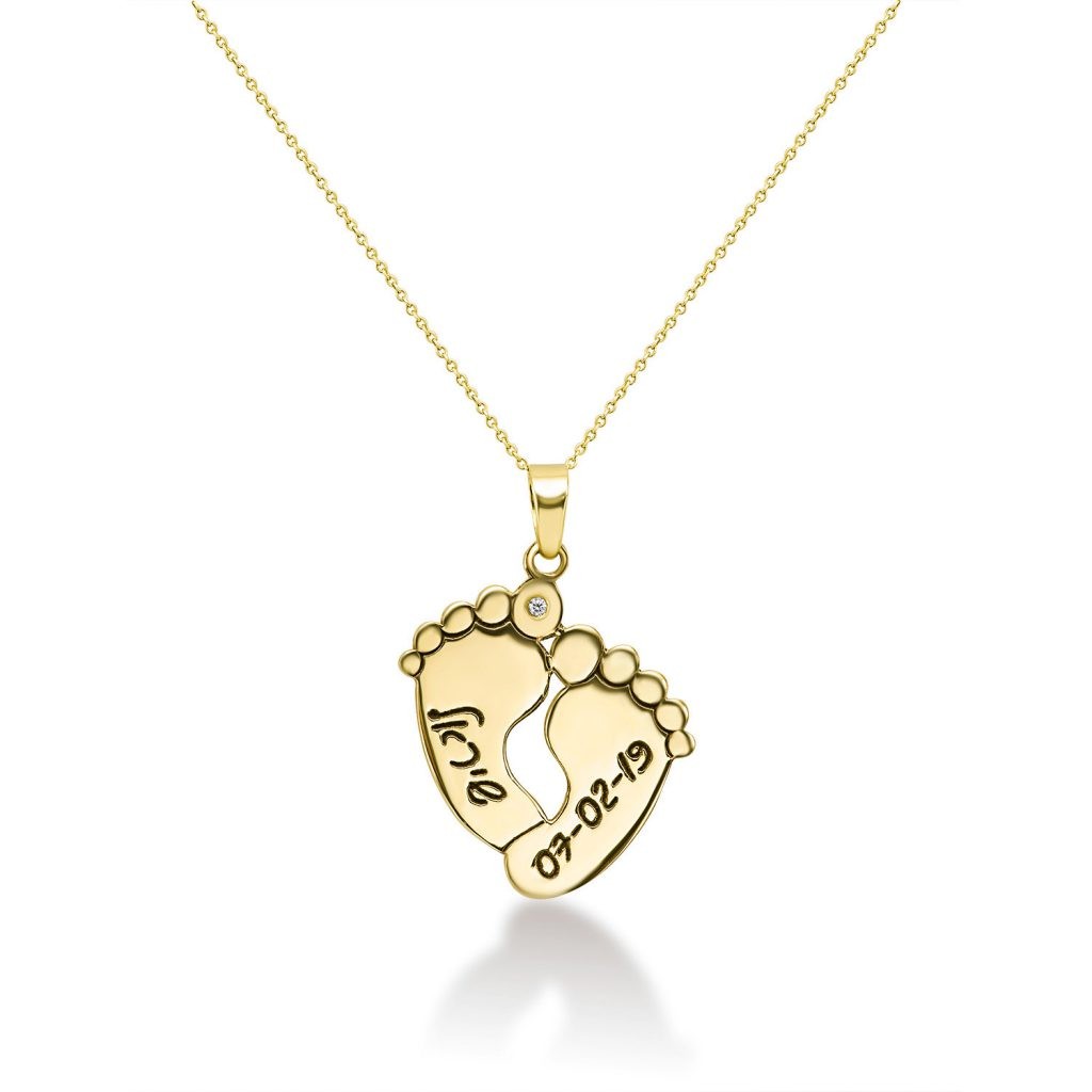 שרשרת זהב – כפות רגליים עם חריטה ויהלום