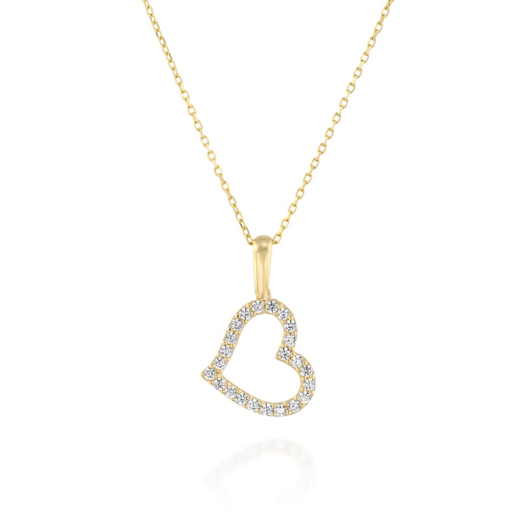 שרשרת זהב 14k עם תליון לב משובץ זרקונים