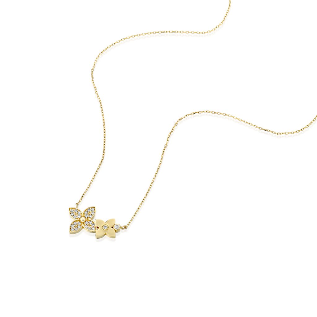 שרשרת זהב 14K עם תליון פרחים משובץ יהלומים