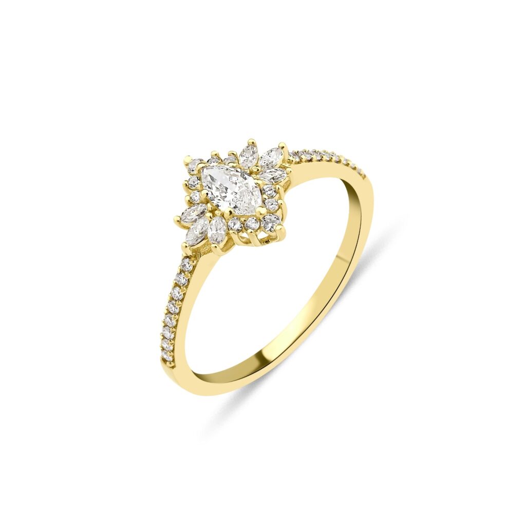 טבעת זהב 14K משובצת יהלום מרקיזה במרכז