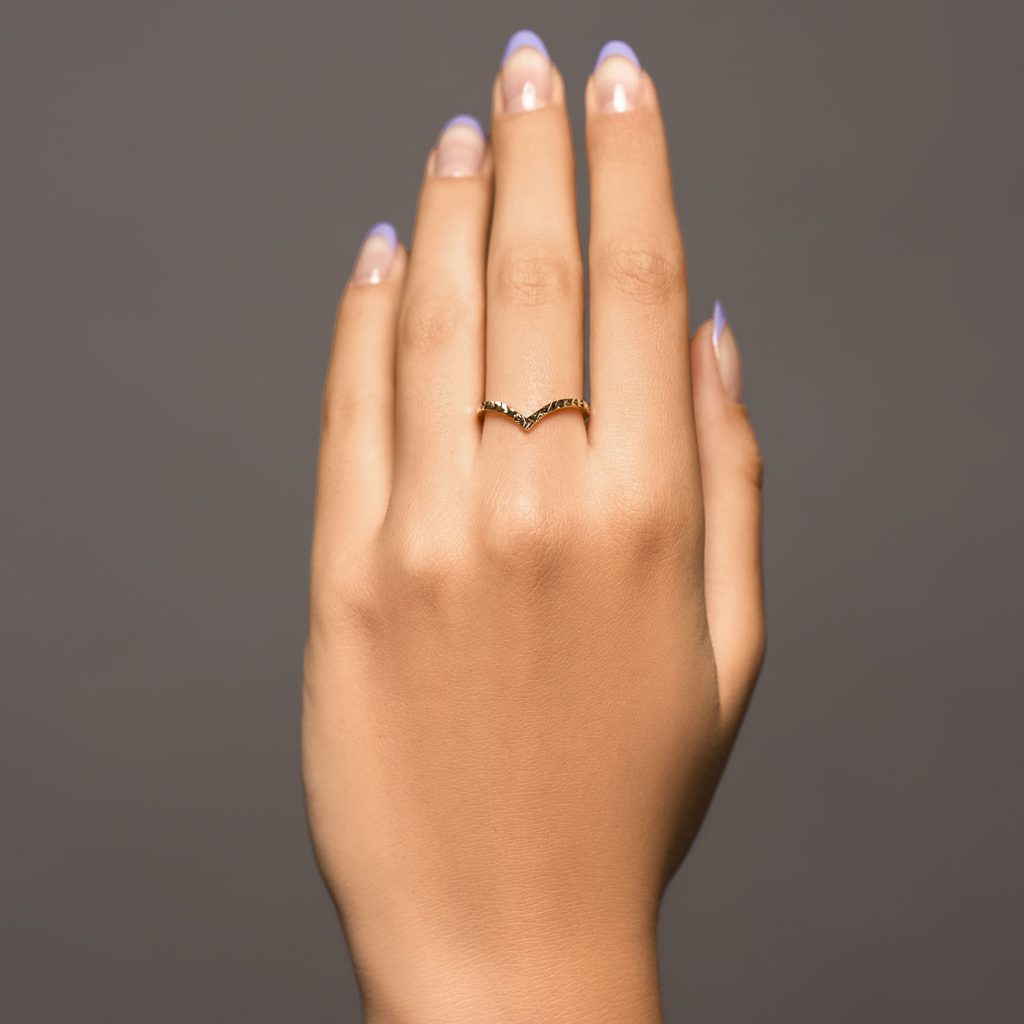 טבעת זהב בחיתוך יהלום, מעוצבת בצורת V זהב 14K