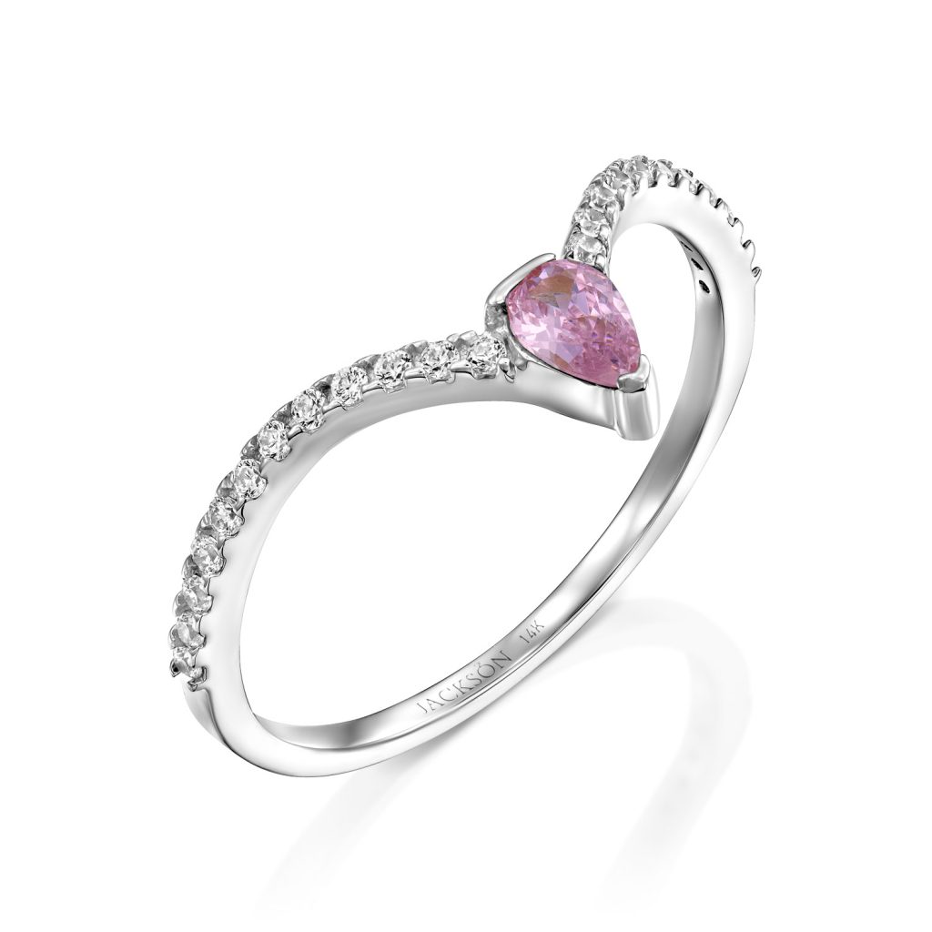טבעת זהב – וי טיפה ורודה