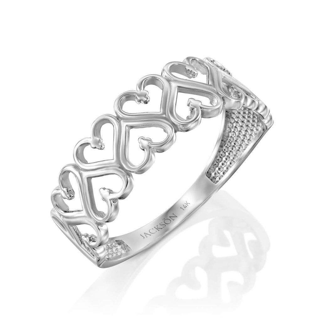 טבעת זהב 14k בעיצוב לבבות צמודים