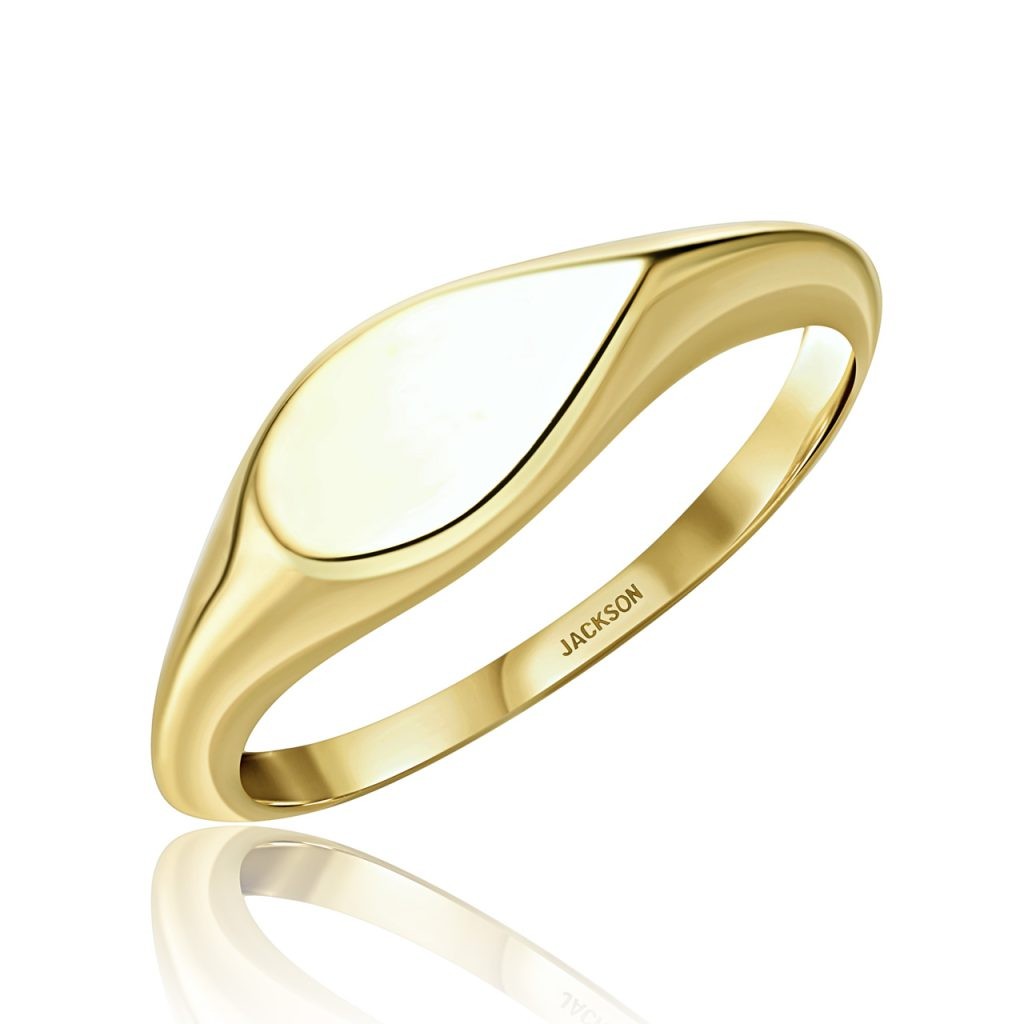 טבעת חותם בצורת טיפה זהב 14k, עיצוב עדין ומיוחד