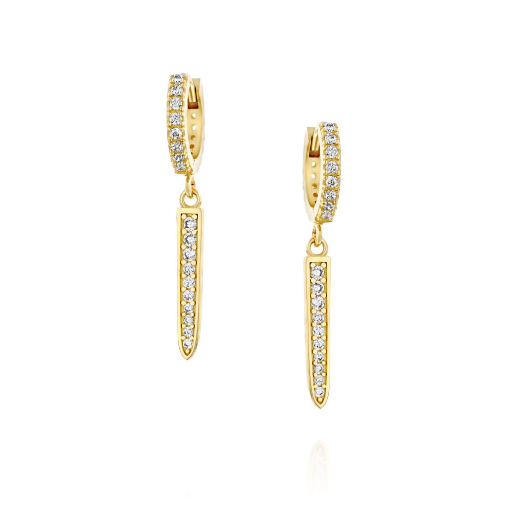 עגילי זהב 14k חישוק עם תליון בצורת חרוט