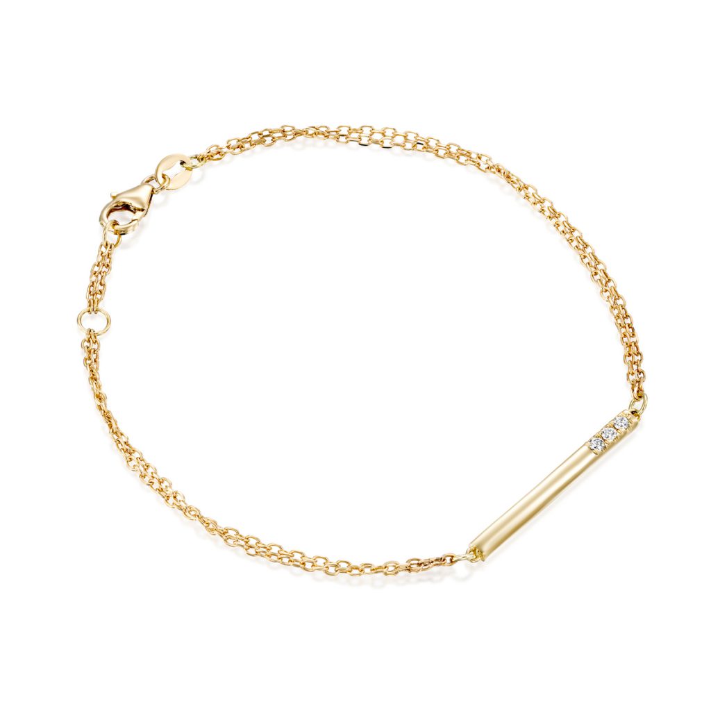 צמיד מזהב 14k עם תליון פס בשיבוץ 3 יהלומים.
