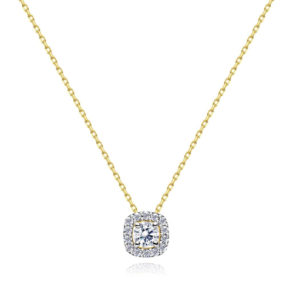 שרשרת זהב 14K עם תליון יהלומים צורת ריבוע